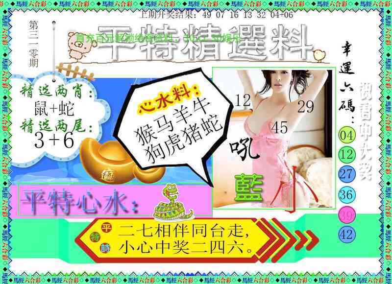 314期:七肖【兔猪虎鸡猴蛇马】开發00中